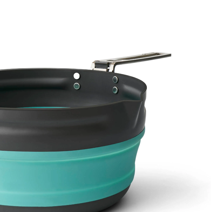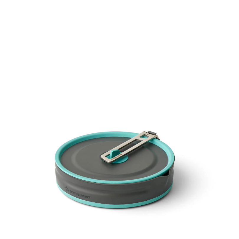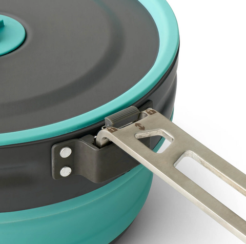 Sea to Summit pioneered collapsible camp cookware, and now elevates it to the next level. The Frontier Pouring Pot has EU food-grade silicone rubber sidewalls, allowing the pot to collapse down for packing then extend out when you're ready to create great outdoor meals. The hard-anodized aluminium alloy base spreads heat quickly and efficiently, and the alloy lid has a LidKeep. Use this patent-pending innovation to clip the lid to the side of the pot, giving you a free hand (and solving the problem of what to do with a hot, clean lid). While cooking, hold the pot securely with the stainless steel Click-Safe handle. When you pack, turn the handle around to keep the lid - and any nesting tableware - secure in your pack.
