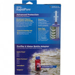 The RapidPure® Universal Purifier water bottle adapter turns your favorite wide mouth water bottle into an advanced water filter and purifier that removes over 99.99% of viruses, bacteria, parasites, sediment, and more. The purifier twists onto your bottle and features a flip top lid. More than a filter, the UltraCeram® technology acts like a magnet to remove pathogens 100 times smaller than traditional microfilters can remove and works even after it has been frozen. With no pressing or back flushing required, this fast water filter is the best water purifier for personal use.